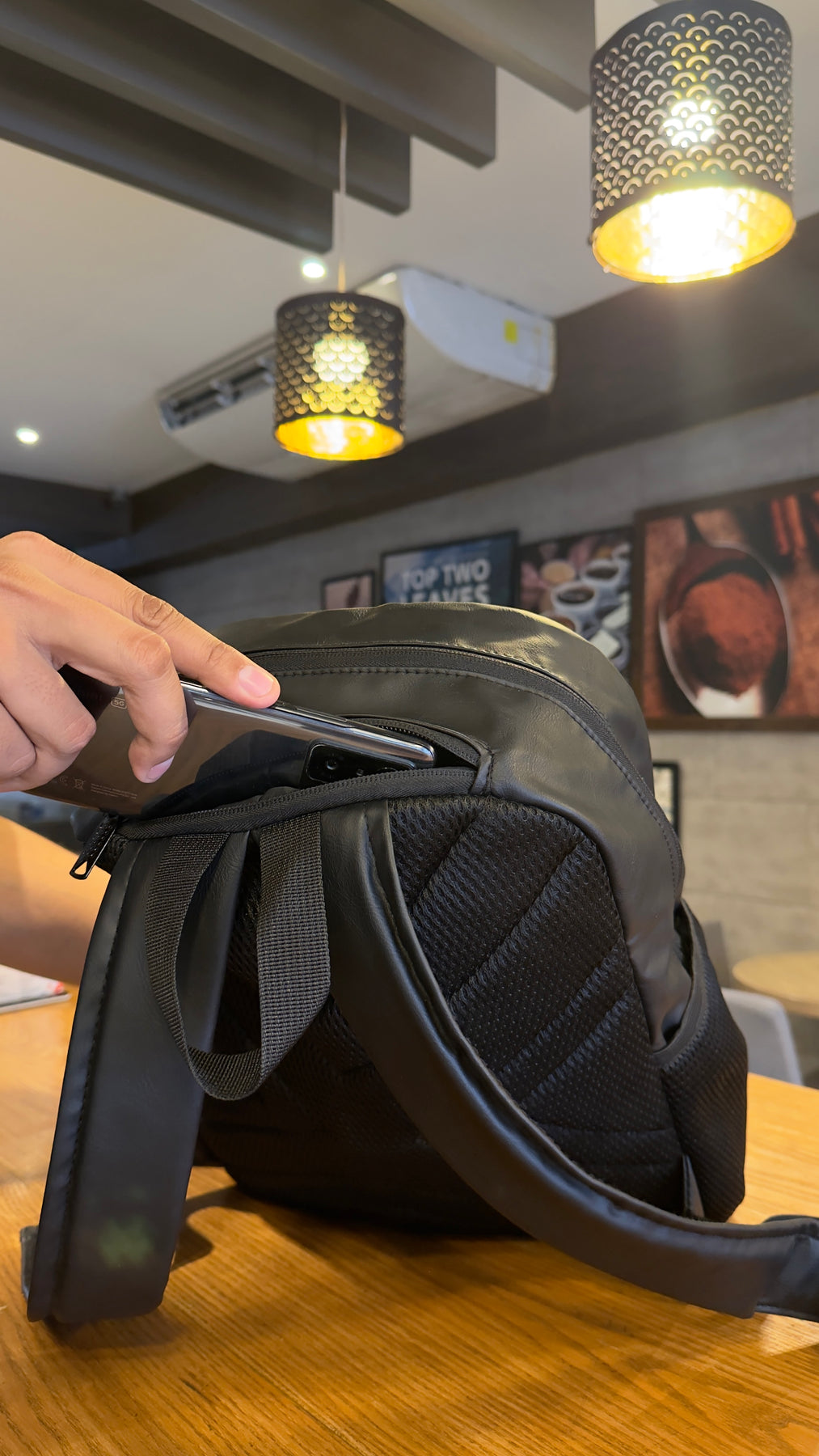 On the exterior, the backpack features two zipped compartments on the front, perfect for storing items that require quick and easy access. These compartments are ideal for organizing smaller essentials such as chargers, cables, pens, and notebooks, keeping them within reach at all times. Additionally, a smaller zipped compartment on the top provides a discreet space for items like keys, sunglasses, or a smartphone, offering convenience without compromising on style.