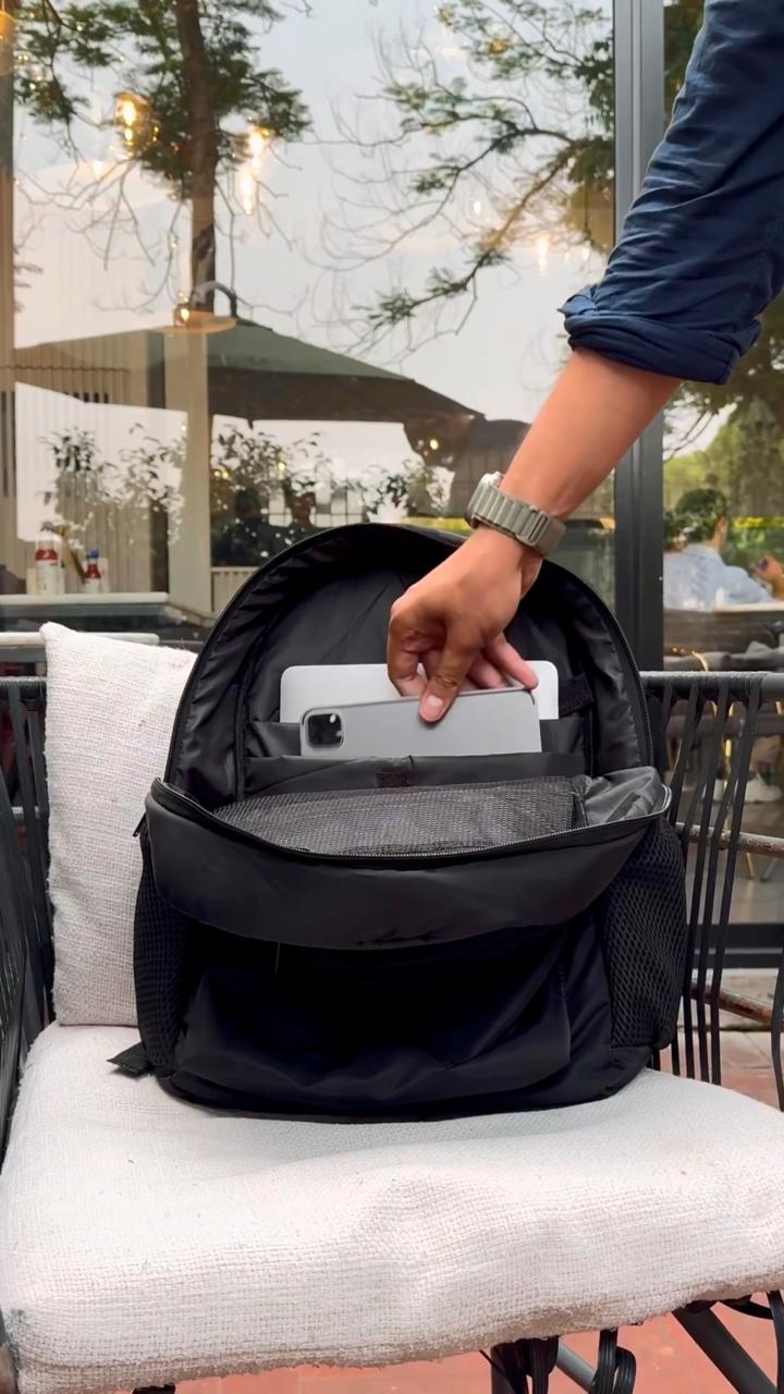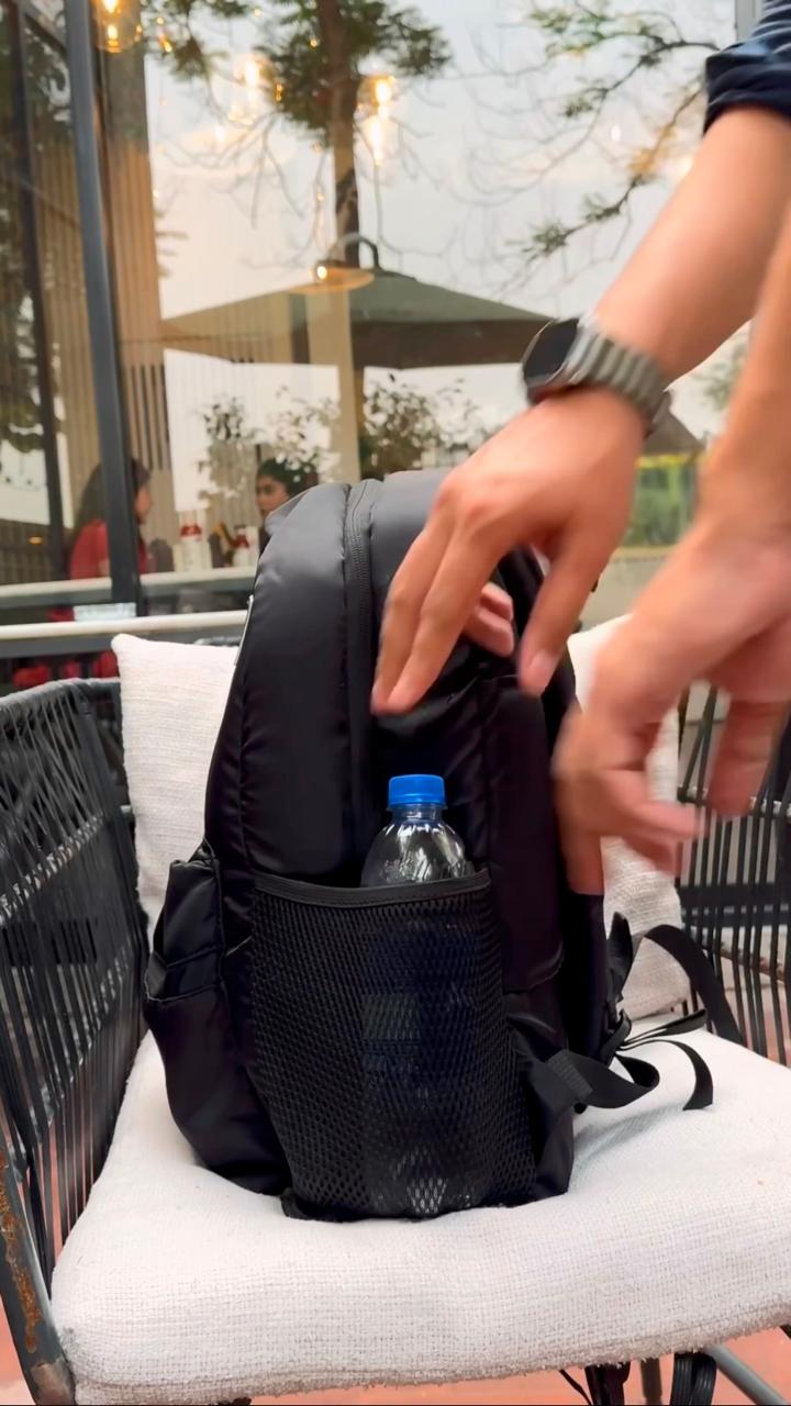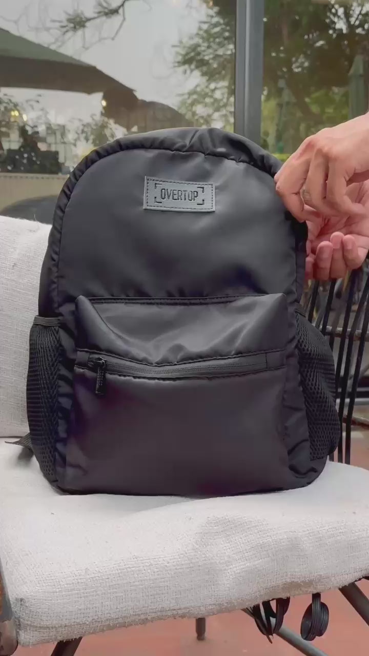 The Overtop Classic is the ultimate backpack for those who need versatility and style. whether you're heading to work, traveling, or hitting the gym, this backpack adapts to your lifestyle. crafted with high-quality materials and a sleek design, it's a timeless addition to any wardrobe. with water-resistant fabric, your essentials stay protected, while the YKK zippers ensure durability and security. the classic has multiple compartments, including a laptop sleeve, tablet sleeve, and a removable drawstring bag for gym clothes or shoes. it also features two stretchable water bottle holders, a luggage sleeve, and 10 additional pockets to keep you organized. the adjustable padded shoulder straps and padded back ensure all-day comfort, while the mesh interior pocket and vegan leather trim add a touch of luxury. designed for practicality and style, the classic is your go-to companion for any occasion. plus, its sustainable approach means you can carry with confidence, knowing you've made an eco-friendly choice. discover the backpack that does it all — your new favorite, the classic.