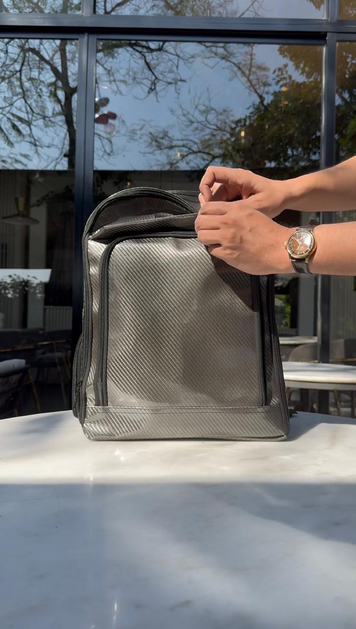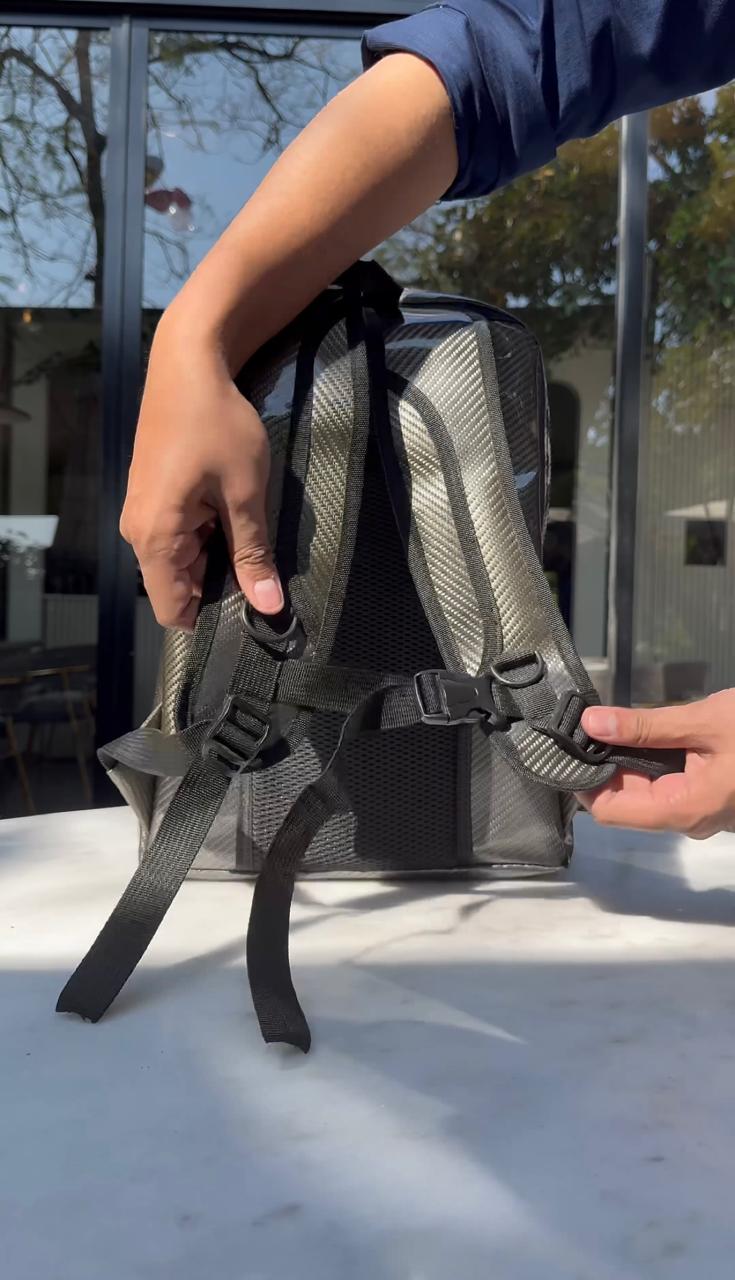 Introducing our Carbon Fiber Travel Backpack—a perfect fusion of durability, style, and practicality. Designed for modern travelers, this backpack boasts a sleek carbon fiber finish that not only looks premium but is also engineered for maximum strength and lightweight performance.